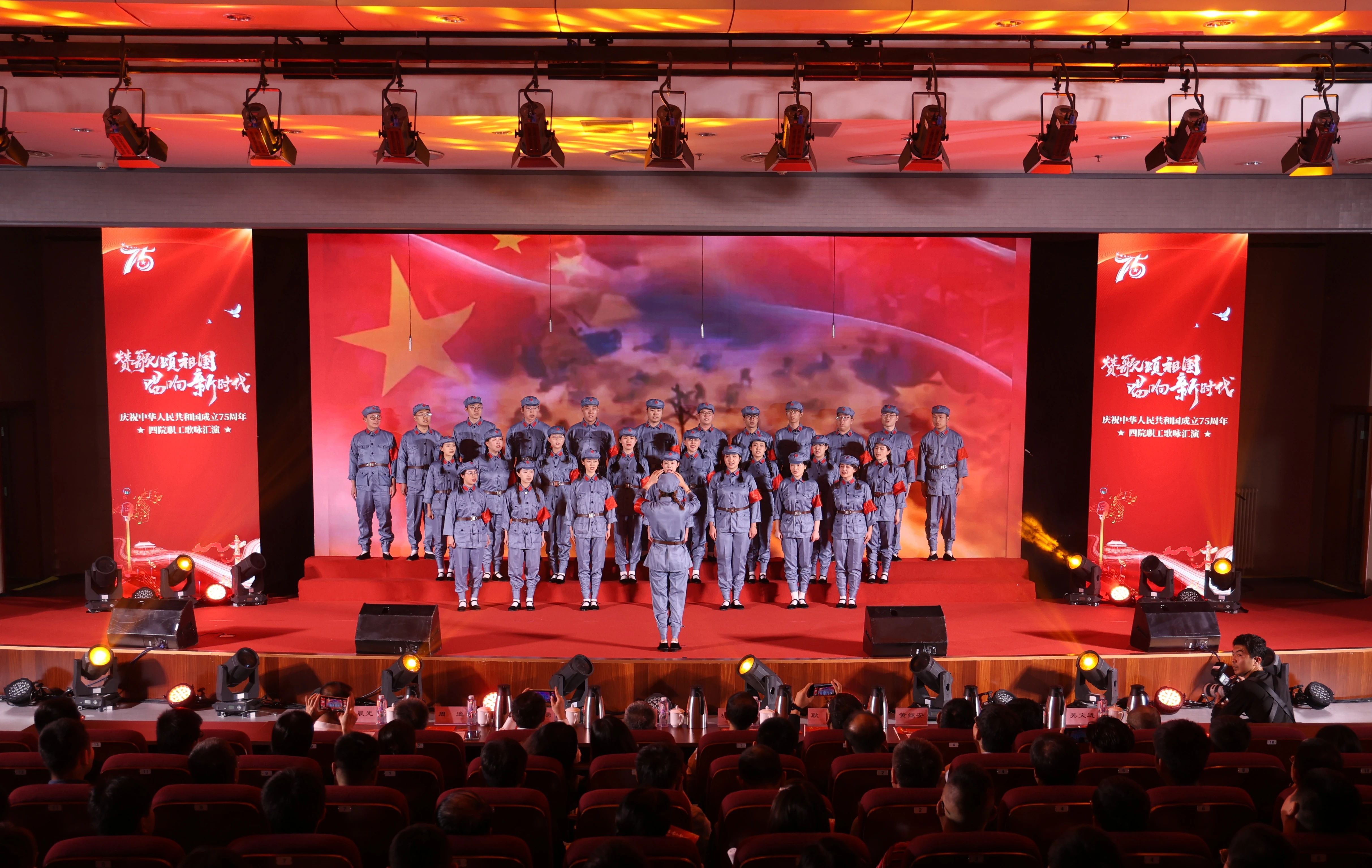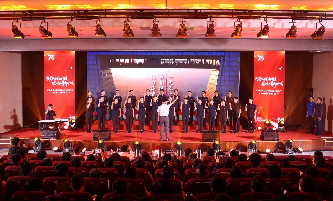 為熱烈慶祝中華人民共和國成立75周年,激發(fā)干部職工愛黨愛國熱情,9月28日,四院舉辦了“贊歌頌祖國 唱響新時代”主題職工歌詠匯演活動。四院全體在家領(lǐng)導(dǎo)班子出席活動并與參演全體職工大合唱。