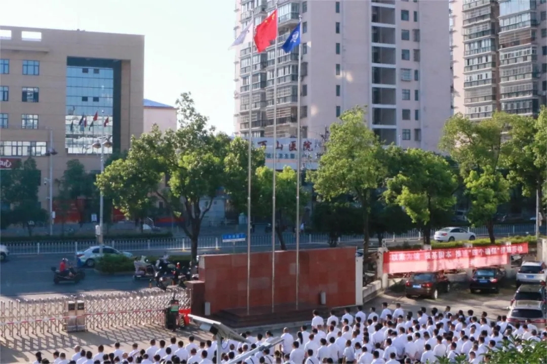 在雄壯的國歌聲中,鮮艷的五星紅旗冉冉升起。在激昂的集團公司司歌聲中,司旗迎風飄揚。