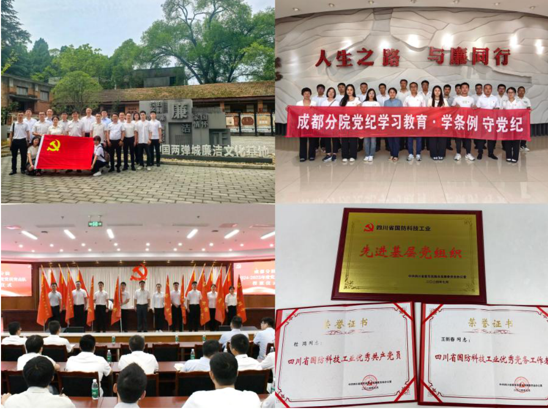 成都分院始終將黨的建設(shè)擺在首位,黨委帶領(lǐng)13個黨支部高質(zhì)量開展黨紀(jì)學(xué)習(xí)教育,通過精心組織參觀警示教育基地,舉辦漫畫解讀《中國共產(chǎn)黨紀(jì)律處分條例》展、拍攝微視頻等,嚴(yán)的基調(diào)、嚴(yán)的措施、嚴(yán)的氛圍進(jìn)一步強化。1個黨支部、2名黨員獲評四川省國防科技工業(yè)“兩優(yōu)一先”表彰,省級榮譽獎勵實現(xiàn)“零的突破”。10支黨員突擊隊攻堅克難,實現(xiàn)業(yè)務(wù)工作和黨建工作有效融合。