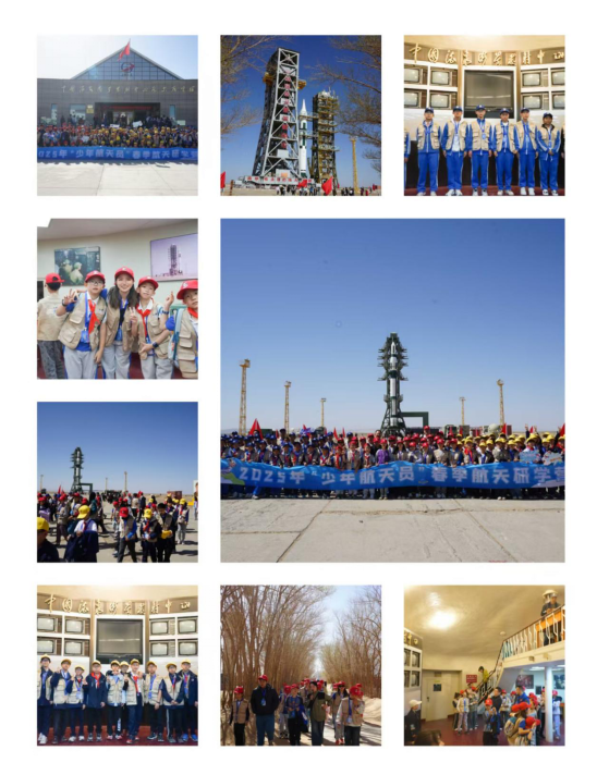 在第十個“中國航天日”當(dāng)天,同學(xué)們凌晨4:00就從營地出發(fā)前往中國酒泉衛(wèi)星發(fā)射中心,奔赴一場和神舟二十號載人飛船的浪漫之約。經(jīng)過數(shù)小時車程,大家早早來到東風(fēng)航天城,在老師們帶領(lǐng)下走進酒泉衛(wèi)星發(fā)射中心歷史展覽館,了解中國載人航天工程和中國空間站的奧秘,學(xué)習(xí)航天員在太空的生活和工作知識;來到“東方紅”衛(wèi)星發(fā)射場,感受“兩彈一星”精神。在高高的發(fā)射塔架下,來自全國各地的同學(xué)們手拉手互動,在“東方紅”衛(wèi)星升起的地方齊聲吶喊出最美好的祝?!白I裰鄱柊l(fā)射成功!”