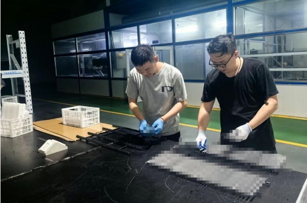 全力促生產(chǎn)同心協(xié)力:當(dāng)噴涂線深夜積壓時,剛完成氧化任務(wù)的易工、岳工、葛工等人主動轉(zhuǎn)戰(zhàn)支援;檢驗(yàn)寧工、方工、鮑工、黃工組成“多維質(zhì)量鎖”,接力合作完成產(chǎn)品檢驗(yàn),最終實(shí)現(xiàn)產(chǎn)品的如期交付。“屏蔽能手”葛工忙完本崗后站在涂膠工作區(qū),用纖纖巧手幫助伙伴校準(zhǔn)膠槍軌跡;“萬能”吳工是哪里需要奔哪里,產(chǎn)線各處都能看到他忙碌協(xié)作的身影。