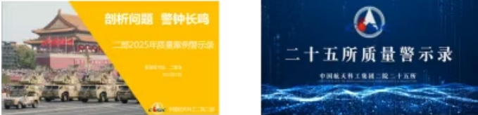制作二院《質(zhì)量警示錄》,組織全院6000余人觀(guān)看集團(tuán)公司和二院質(zhì)量警示錄。二部、25所、206所、699廠(chǎng)等單位結(jié)合實(shí)際情況,編制了本單位質(zhì)量案例警示錄并在本單位循環(huán)展播。