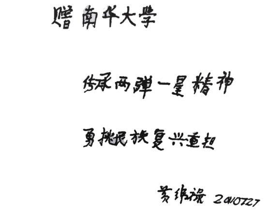 2011年,即將走到生命盡頭的黃緯祿反復(fù)進(jìn)出醫(yī)院。時至7月,病情嚴(yán)重的黃緯祿已經(jīng)完全臥床,此時南華大學(xué)組織的一個“兩彈一星”夏令營到訪北京,要訪問“兩彈一星”功勛獎?wù)芦@得者,但約定的幾位獲獎?wù)呔蚋鞣N原因無法到場。黃緯祿在推辭的過程中了解到組織者的難處,不顧病重依然同意接受采訪。為了滿足師生們迫切期盼得到他題字的愿望,黃緯祿在女兒黃道群的幫助下,顫顫巍巍寫下了此生絕筆——傳承“兩彈一星”精神,勇挑民族復(fù)興重?fù)?dān)。