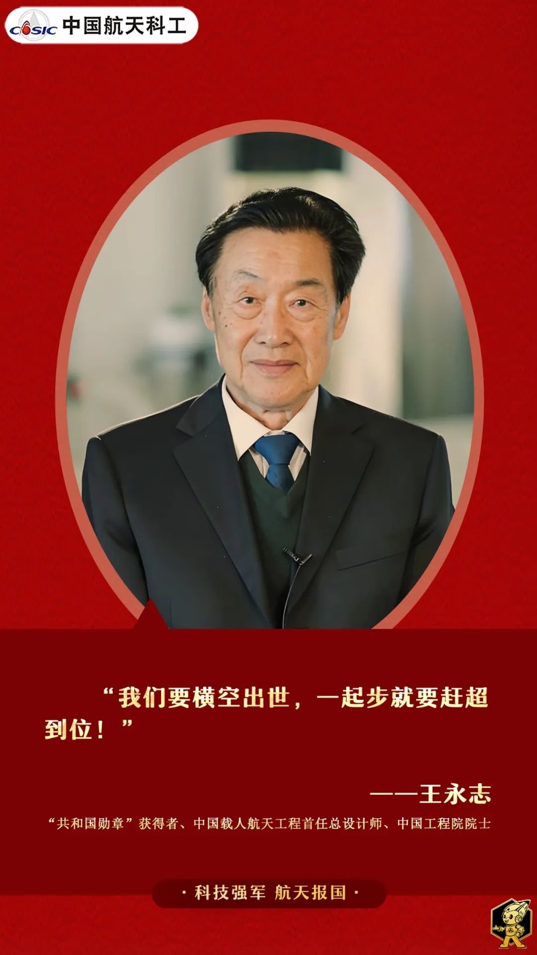 時(shí)間:2024-09-30       來(lái)源:央視網(wǎng) 《國(guó)家勛章和國(guó)家榮譽(yù)稱號(hào)獲得者|王永志——時(shí)刻聽從國(guó)家召喚 敢于赴湯蹈火》中國(guó)航天報(bào)《“共和國(guó)勛章”獲得者丨王永志:永志不忘強(qiáng)國(guó)夢(mèng)》中國(guó)新聞周刊、中國(guó)航天科工