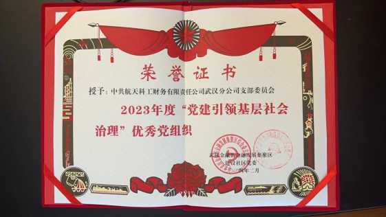 分公司黨支部長期堅持以人民為中心的發(fā)展思想,以實際行動履行社會責(zé)任,積極為和諧社會貢獻(xiàn)航天力量,被武漢金融街金融發(fā)展集聚區(qū)建設(shè)社區(qū)黨委授予2023年度“黨建引領(lǐng)基層社會治理”優(yōu)秀黨組織榮譽(yù)稱號。(文/李強(qiáng))