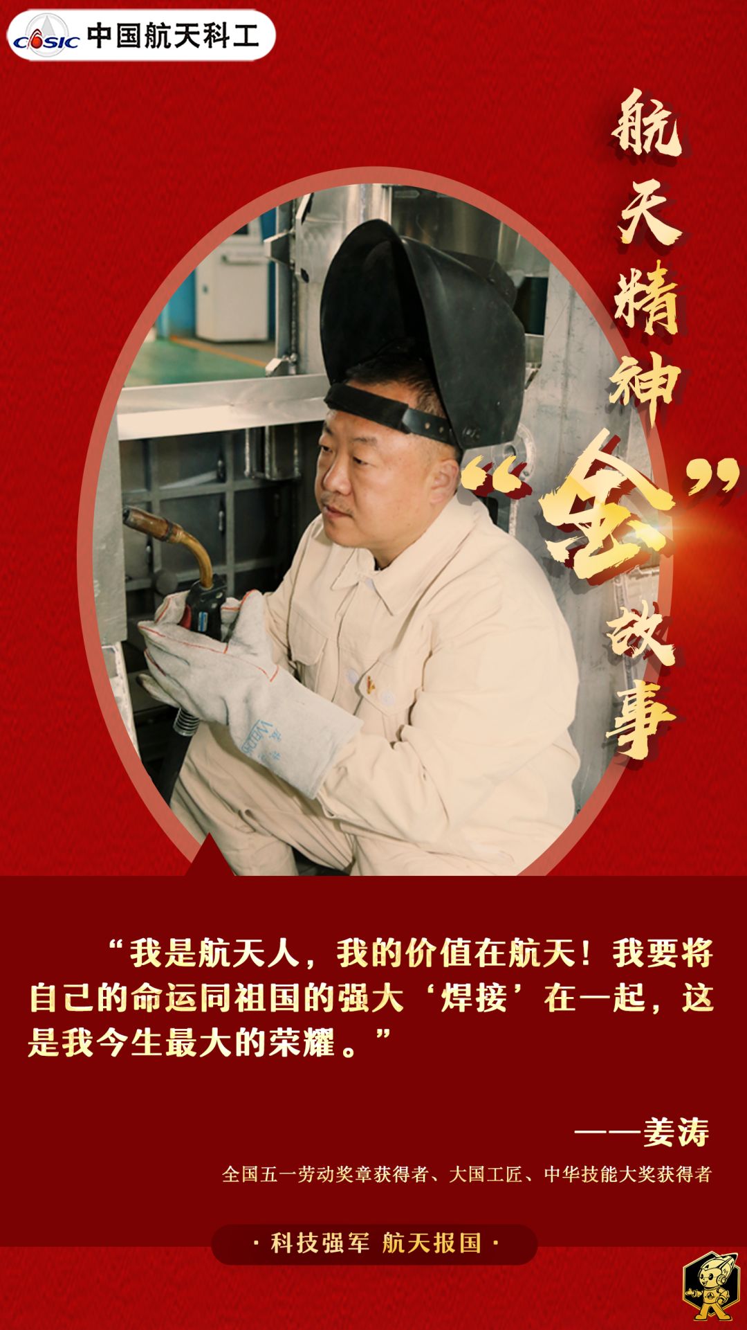 電焊工作強(qiáng)度高,苦、累、臟,曾經(jīng)的工友們不少已離開(kāi)了這個(gè)崗位,但姜濤依然堅(jiān)守;也曾有民營(yíng)企業(yè)高薪相邀,姜濤卻全都婉拒。別人選擇航天,綁定航天,他選擇將自己與航天“焊”在一起,這種更堅(jiān)定的選擇,更牢固的綁定,不是深入骨髓的愛(ài)國(guó)之情又是什么呢?