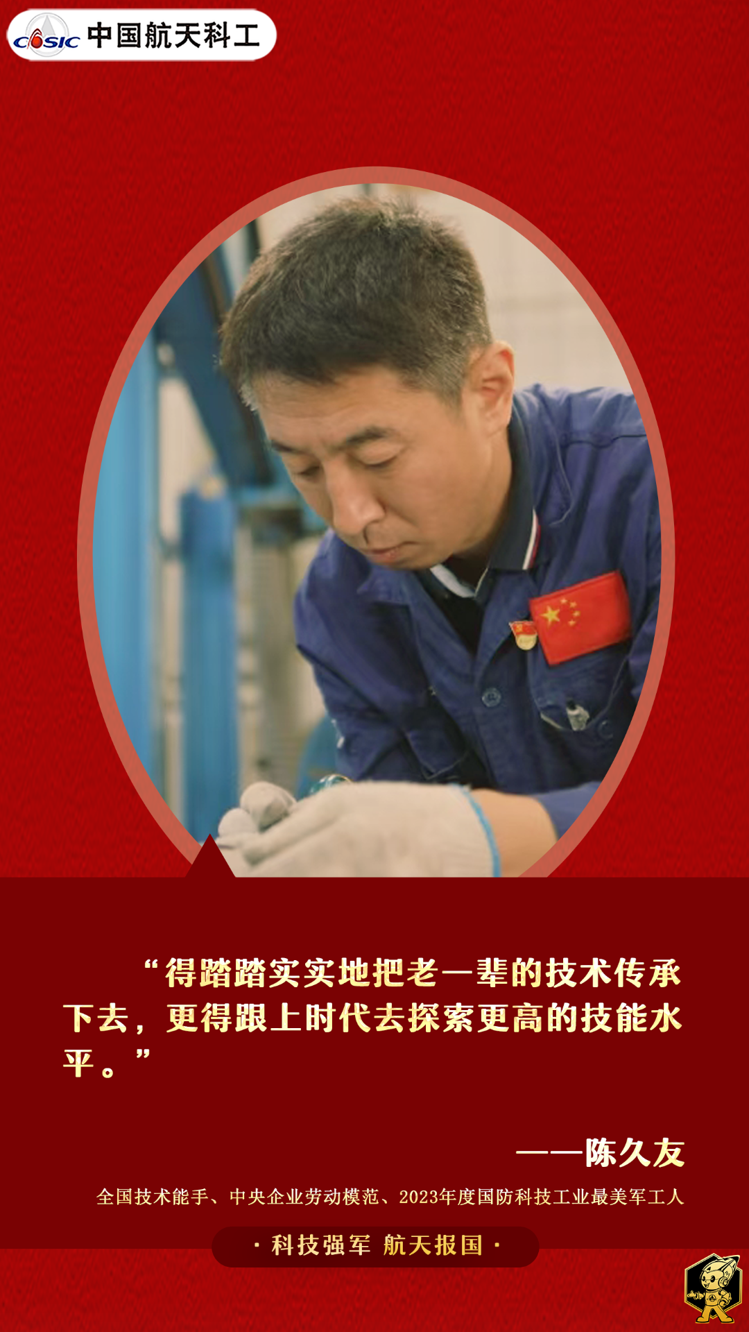 面對(duì)“凹陷一毫米,損失上百萬”的巨大挑戰(zhàn),陳久友回答:“沒問題!”看似輕松,實(shí)則是藝高人膽大?!澳憽睆暮翁巵??從24年的磨礪中來,從對(duì)“急難險(xiǎn)重”的處置經(jīng)驗(yàn)中來,從對(duì)航天事業(yè)的熱愛中來。我們要學(xué)陳久友,把困難挑戰(zhàn)當(dāng)財(cái)富。迎難而上,必有所得!