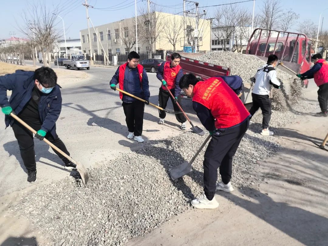近日,航天精工團委組織團員青年開展志愿鋪路活動。10余名青年志愿者對天津市金橋工業(yè)園內(nèi)坑洼不平的路段展開整修,方便了職工日常通行。(攝/陳星)