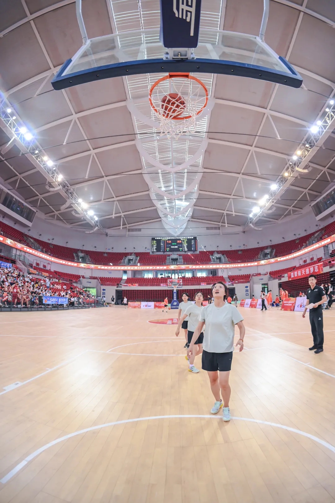 為廣泛動(dòng)員職工參與,本屆賽事創(chuàng)新采用男子常規(guī)賽與女子趣味投籃得分相加的形式。